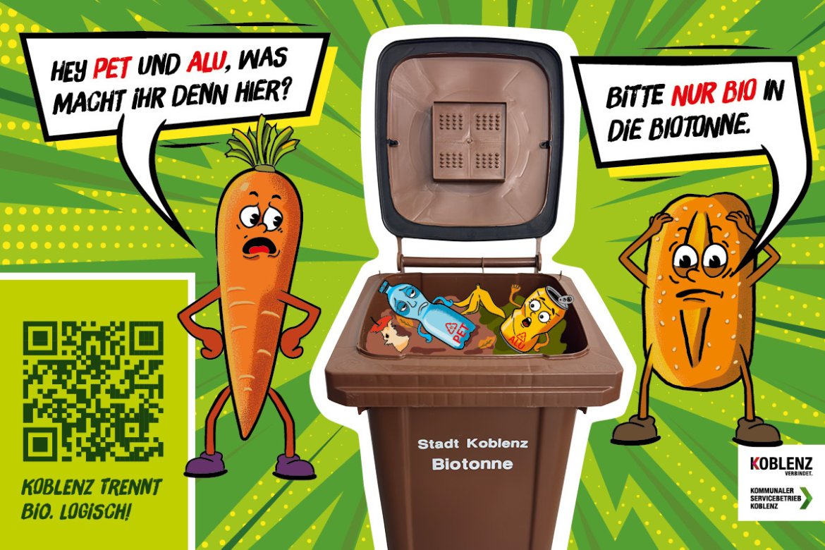 Dieser wertvolle Rohstoff steht nicht zur Verfügung für die Biogasgewinnung oder die Kompostproduktion, sondern wird thermisch verwertet. Nach dem Motto "Koblenz trennt Bio – logisch!" möchten wir, dass mehr Biomüll korrekt in der Biotonne landet.