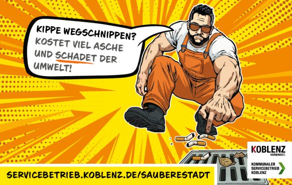 Daher bittet der Kommunale Servicebetrieb Koblenz, nicht glühende Zigarettenreste im Papierkorb/Ascher zu entsorgen. Mit einem Taschenaschenbecher hat man immer ein Behältnis für Kippenreste dabei, in dem man sie zum nächsten Papierkorb bringen kann.